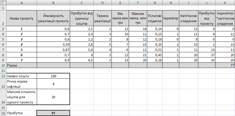 - •Лабораторна робота №10 Тема: „Оптимальний вибір інвестиційного проекту” Постановка задачі
