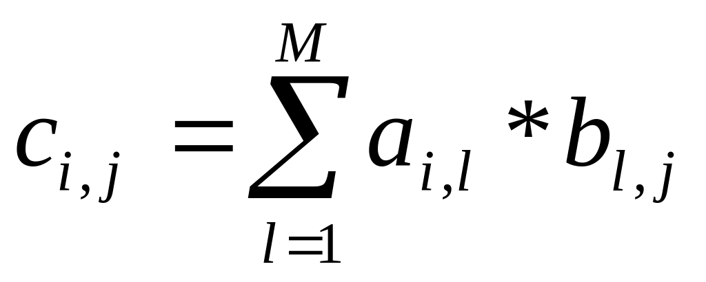 В результате вычисления произведения матрицы A и вектора B получим вектор C , в котором число элементов равно числу строк матрицы A (т.е. N). Отметим, что число элементов вектора B равно числу столбцов матрицы A (т.e. M).