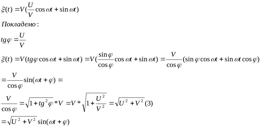 Покажемо, що СВФ можна представити у вигляді гармонічних коливань з випадковими амплітудами і випадковими фазами: