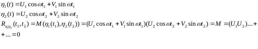 Якшо доданок суми (4) є попарно не корельовано то кореляційна функція цієї суми = сумі кореляційної функції доданків..Таким чином перевіримо що наші доданки є попарно некорельовані.