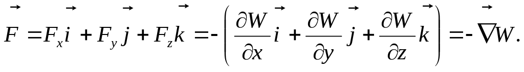 Смысл градиента станет нагляднее и яснее, если ввести понятие эквипотенциальной поверхности - поверхности, во всех точках которой потенциальная энергия W имеет одно и то же значение. Ясно, что каждому значению W соответствует своя эквипотенциальная поверхность.