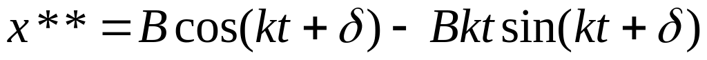 Определяем производную х** как производную произведения функций Bt и cos (kt+δ):