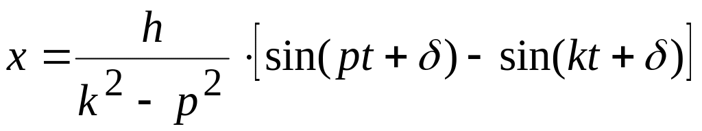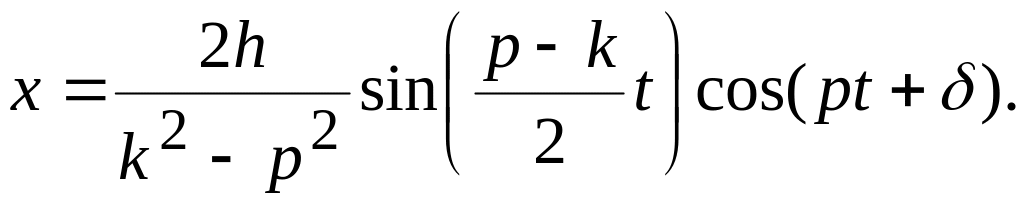 Уравнение (4.14) определяет движение точки, являющееся результатом наложения дополнительных колебаний, вызванных действием возмущающей силы, на собственно вынужденные колебания в случае р≈ k.
