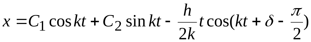 Уравнение (4.20) показывает, что движение точки М при резонансе является результатом наложения свободных и вынужденных колебаний точки, так же как и при р≠ k..