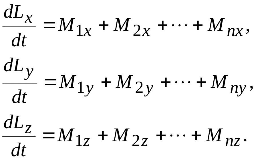 Так как проекция векторной производной на любую ось равна производной от ее проекции на эту ось, то, проецируя векторное равенство (7.7) на оси x,y,z, получим три равенства: