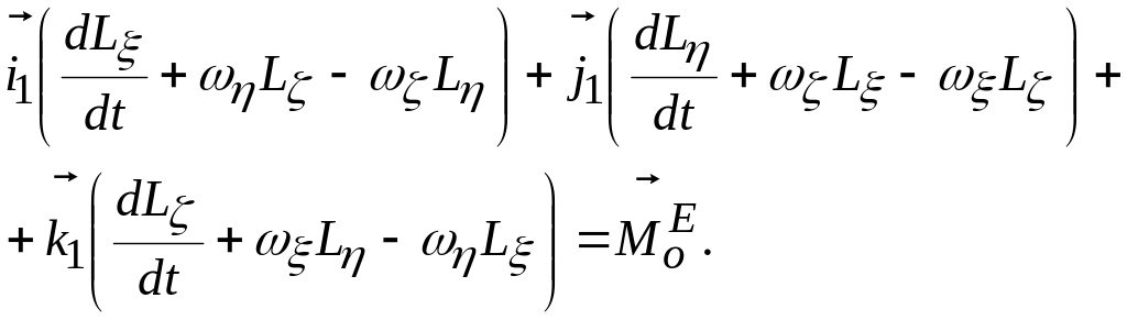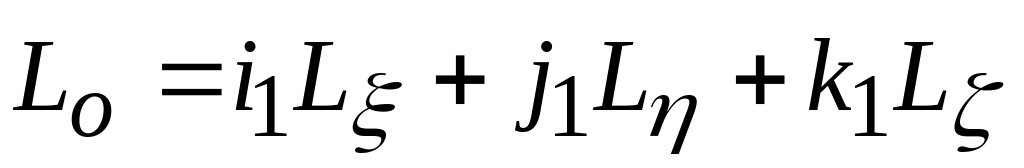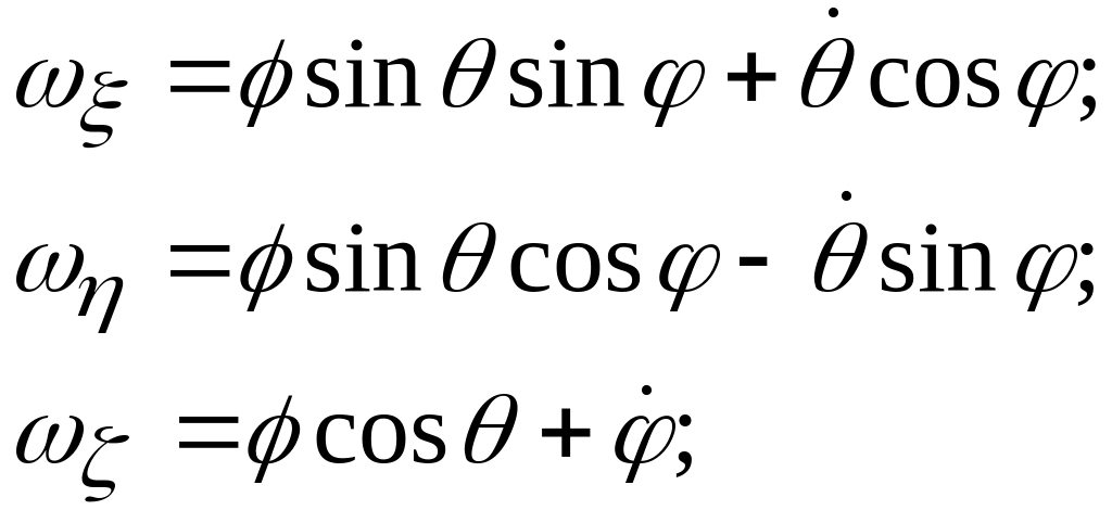 Этому векторному равенству соответствуют три равенства в проекциях на подвижные оси ξ,η,ζ: