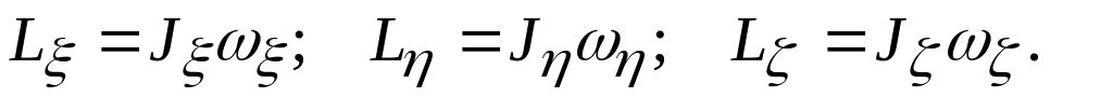 Если за подвижные координатные оси приняты главные оси инерции тела в точке О, то кинетические моменты тела относительно этих осей определяются по формулам (8.8):