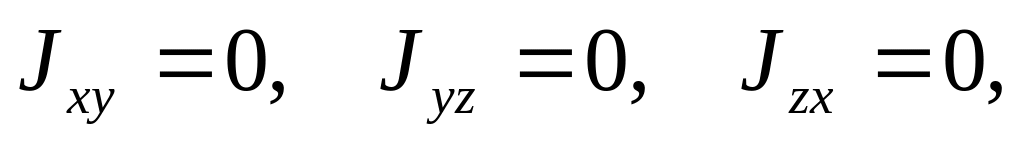 Если за оси координат приняты главные оси инерции в неподвижной точке О, то центробежные моменты инерции тела относительно этих осей равны нулю, т. е.