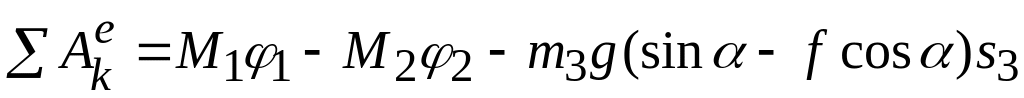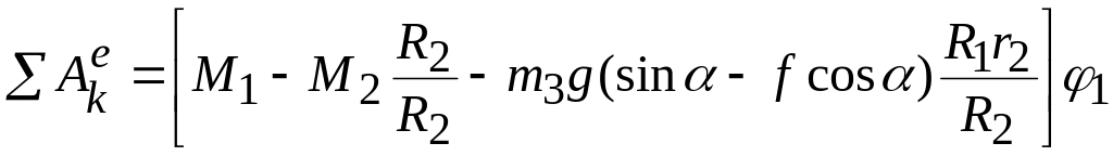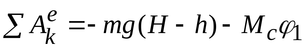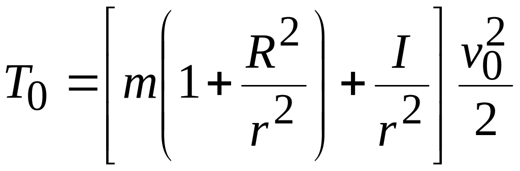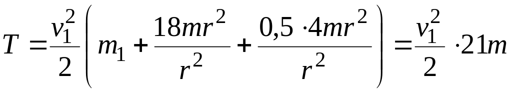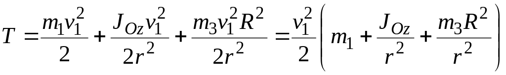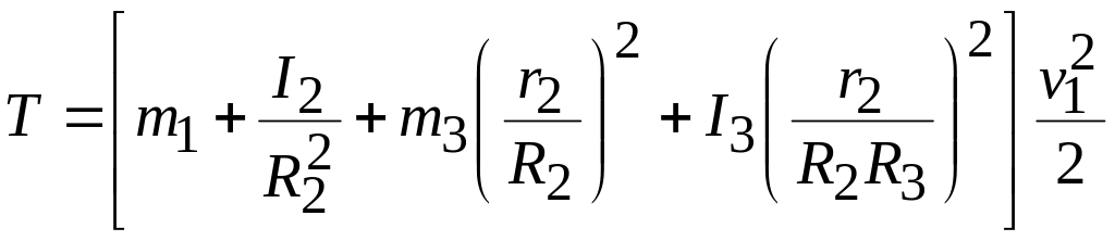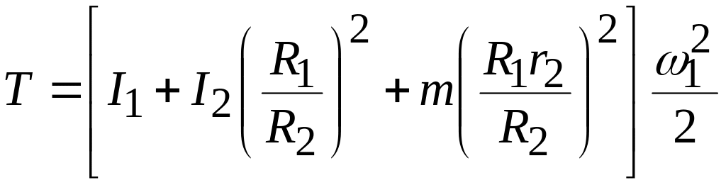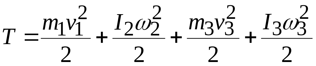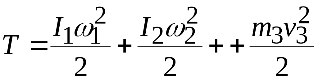 Определим приращение кинетической энергии системы на перемещении из начального положения в некоторое конечное, задаваемое углом . Кинетическая энергия системы в начальном положении Т0= 0 (по условию). Кинетическая энергия системы в конечном положении равна сумме кинетических энергий ведущего и ведомого валов и груза: