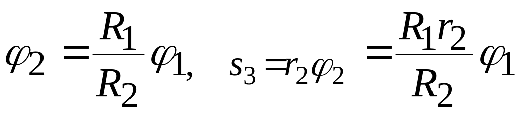 Решение. Рассмотрим систему, состоящую из тел 1-3 и троса. Поскольку тела абсолютно твердые, а трос нерастяжимый, то система имеет одну степень свободы. Будем определять положение системы с помощью угла поворота ведущего вала. Заметим также, что система является неизменяемой. Поскольку движение системы происходит под действием постоянных сил, работу которых можно вычислить, не зная закона движения системы, то для решения задачи удобно использовать теорему об изменении кинетической энергии в конечной форме для неизменяемых систем
