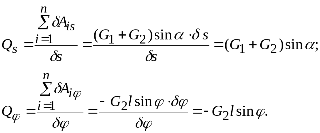 Решение. Для определения обобщенных сил Qs и Qφ используем формулу: