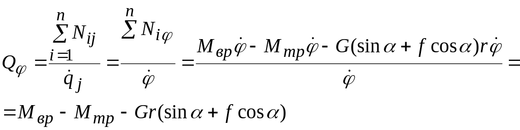 Применяя формулу (13.16), в которую входят мощность системы сил, соответствующая возможной обобщенной скорости системы , получаем