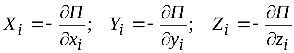 Рассмотрим случай, когда силы, действующие на механическую систему, имеют потенциал. Тогда проекции этих сил на оси координат равны взятым со знаком минус частным производным от потенциальной энергии по соответствующим координатам точек:
