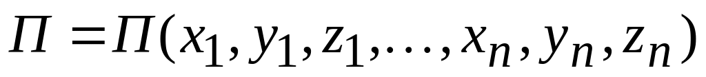 Потенциальная энергия механической системы является функцией декартовых координат точек системы: