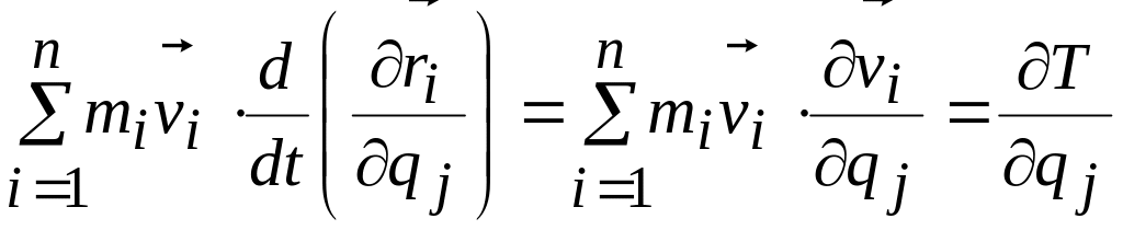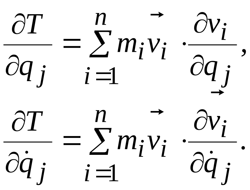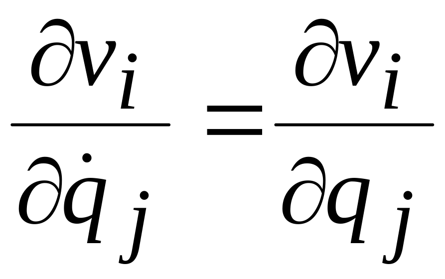 Производные от обобщенных координат по времени называются обобщенными скоростями. Из выражения (а) следует, что частная производная от , по какой- либо обобщенной скорости равна коэффициенту при в правой части этого выражения, т. е. равна частной производной от по координате :