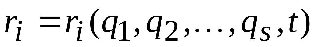 Предположим, что механическая система из n материальных точек имеет s степеней свободы. В случае голономных нестационарных связей радиус-вектор любой точки Mi этой системы является функцией обобщенных координат q1, q2, ..., qs и времени t