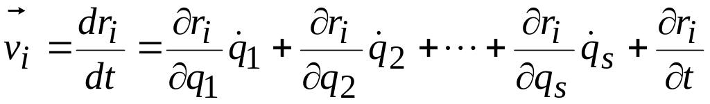 Обобщенные координаты системы q1, q2, ..., qs являются функциями времени. Поэтому радиус-вектор является сложной функцией времени и вектор скорости точки определяется по правилу дифференцирования сложной функции: