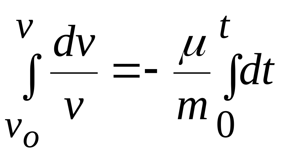 Проинтегрируем это уравнение, беря от обеих его частей после разделения переменных соответствующие определенные интегралы. При этом нижним пределом каждого из интегралов будет значение переменного интегрирования в начальный момент, а верхним — значение того же переменного в произвольный момент времени.