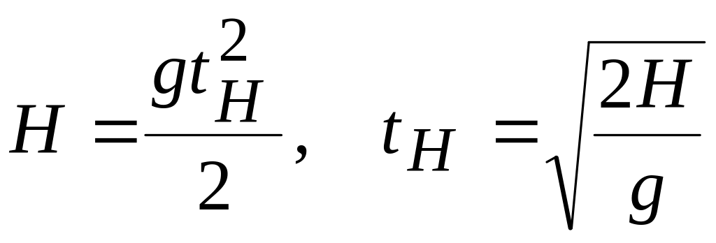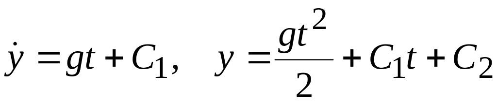 Уравнения характеризующие свободное падение тела при значениях С1 = 0 и С2 = 0, примут вид