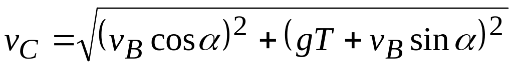 Скорость камня при падении найдем через проекции скорости на оси координат