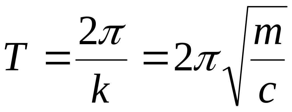Так как k2=с/m, то циклическая частота (ниже циклическая частота называется частотой), и период свободных колебаний определяется