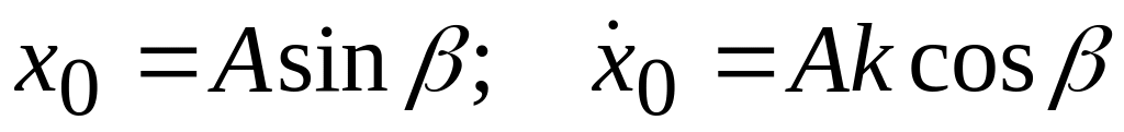 Амплитуда А и начальная фаза β свободных колебаний материальной точки как постоянные интегрирования, введенные вместо C1 и C2, определяются по начальным условиям движения.