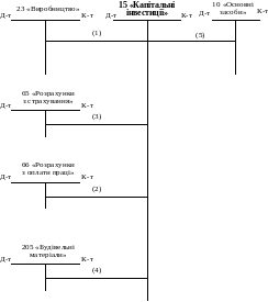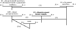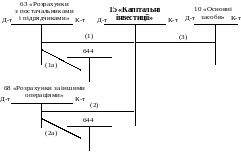 Придбання об’єктів основних засобів за плату, а також їхнє будівництво являють собою капітальні інвестиції підприємства, для обліку яких призначений рахунок 15 «Капітальні інвестиції» (рис. 1.2).