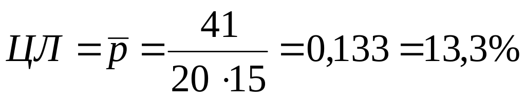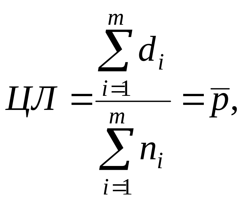 Центральну лінію для контрольної карти часток невідповідностей визначаємо за формулою