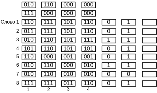 Асоціативний процесор працює з 8 – ма словами та 4 – ма 3 – ох бітовими полями.
