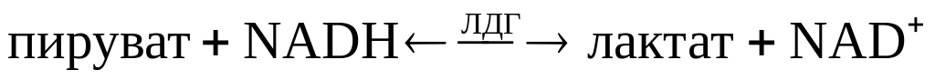 Рис. 5.2.3. Обратимая реакция превращения пирувата в лактат, катализируемая ЛДГ