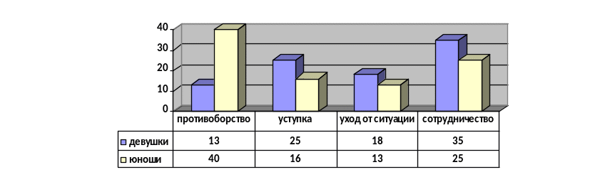 5) Сотрудничество менее популярно у юношей, чем уступка.