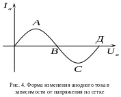 Направление тока меняется в зависимости от того, будет ли первичных или вторичных электронов больше. Характер изменения анодного тока в зависимости от напряжения на сетке показан на рис. 4.