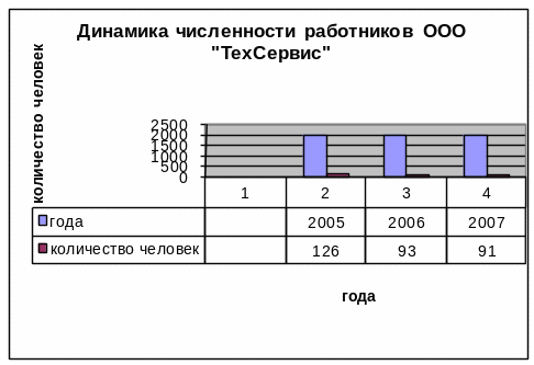 Рисунок 2.1 - Динамика численности работников ООО «ТехСервис»