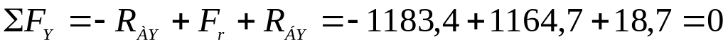 3) Определяем полные реакции поперечные реакции RA и RБ: