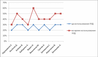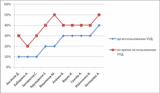во время использования УУД |