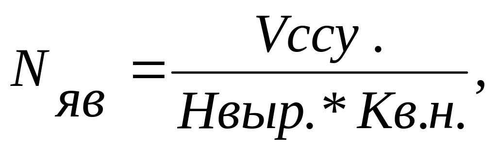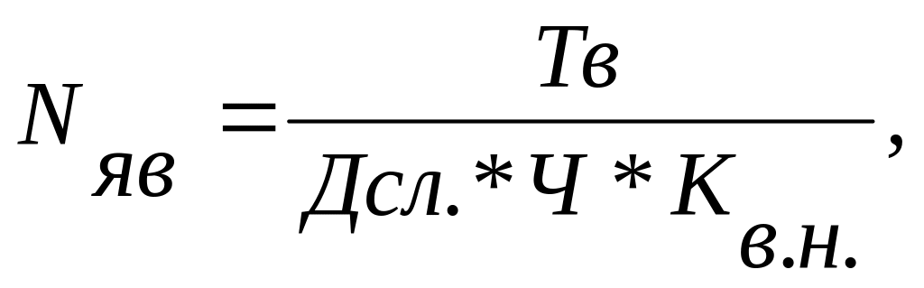 Явочная численность рабочих рассчитывается по формуле: