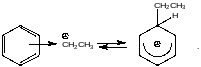 Образовавшийся этильный катион далее вступает с бензолом в реакцию электрофильного ароматического замещения: