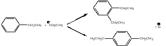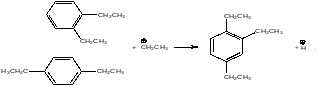 Диэтилбензолы более легко реагируют с этильными катионами, образуя 1,2,4-триэтилбензол: