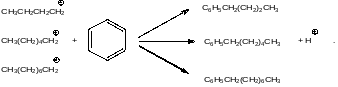 Каждый из образующихся катионов способен алкилировать бензол, что приводит к появлению в реакционной смеси н-бутил-, н-гексил-, н-октилбензола: