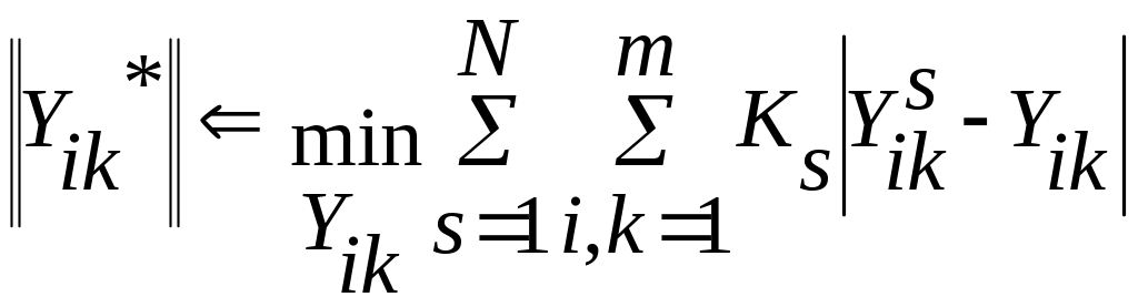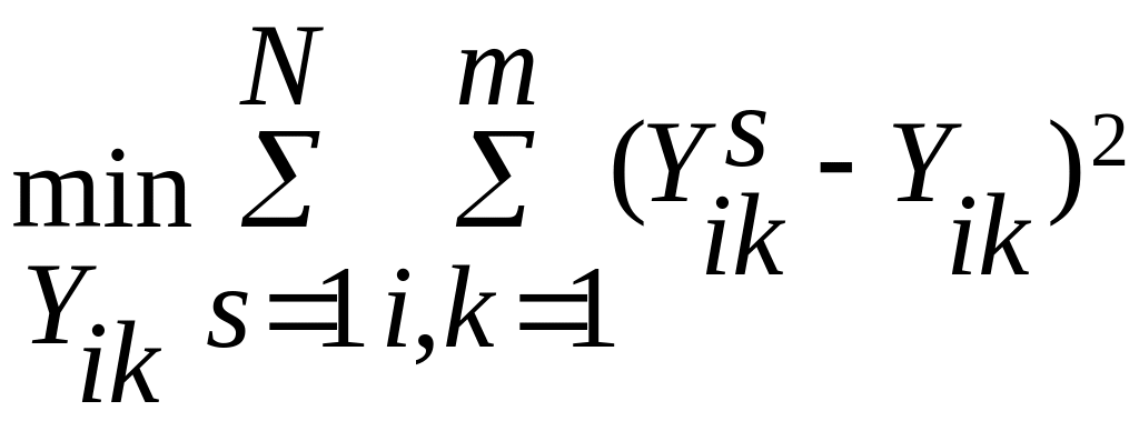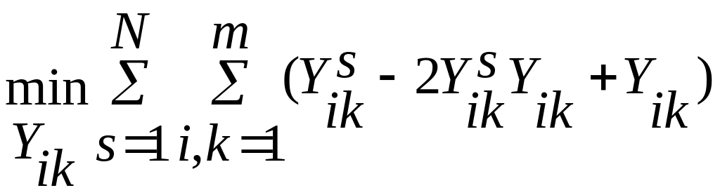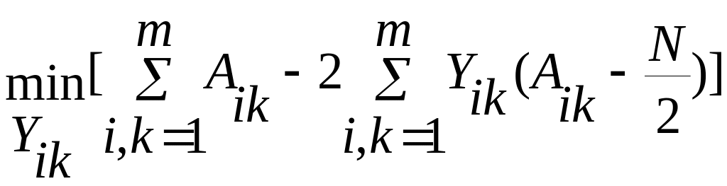 Первая сумма в квадратной скобке постоянна и не зависит от переменной Yik. Поэтому минимум квадратной скобки соответствует максимуму второй суммы. Следовательно,