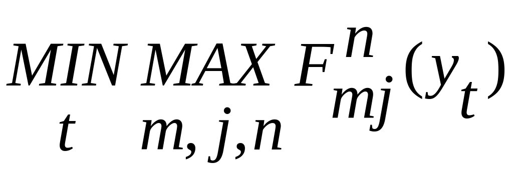 Для каждого t-го из N вариантов решений по всем экспертам, всем ситуациям и всем целям выбирается наихудшее значение функции предпочтения, т.е., максимальный ранг. «Лучшим» признается то решение, у которого этот ранг наименьший (т.е., «лучший из худших»):