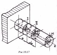 Рассмотрим брус, жестко защемленный одним концом и нагруженный на свободном конце скручивающим моментом М (рис. 19.17). При деформации