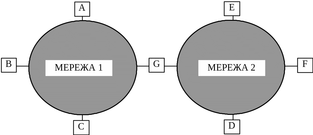 Рис. 3.7. Приклад міжмережних поєднань за допомогою шлюзів G і Н