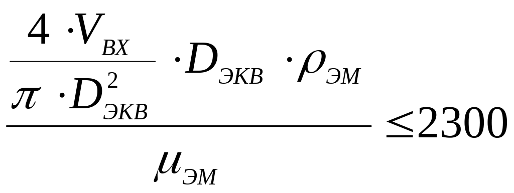 Эффективное разделение фаз в гравитационном отстойнике происходит при условии соблюдения в зоне отстоя ламинарного режима течения эмульсии, т.е. при Re ≤ 2300. Следовательно,