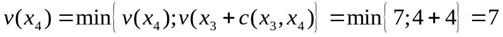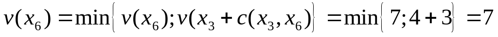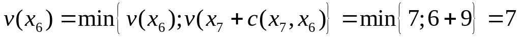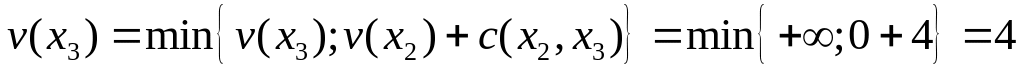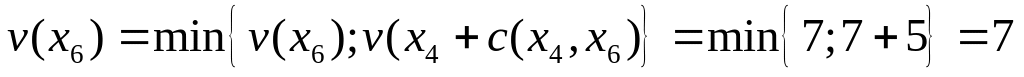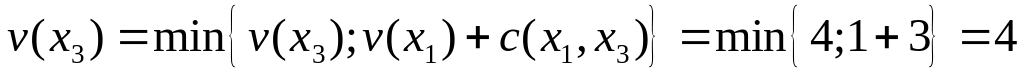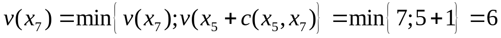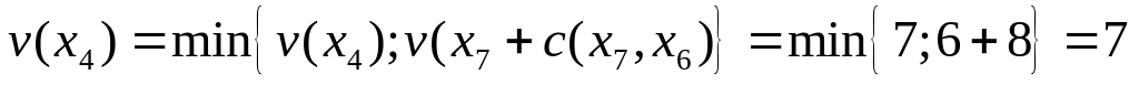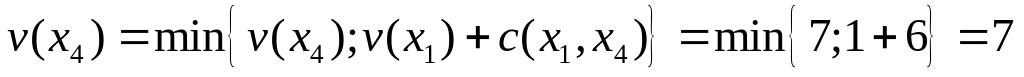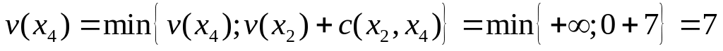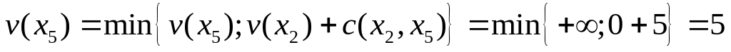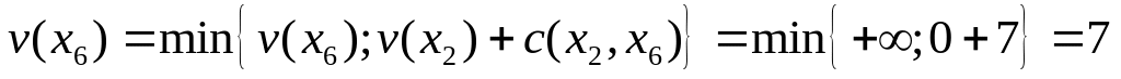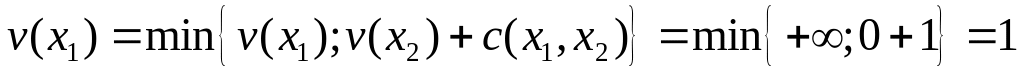 Приймаючи вершину в якості початкової перераховуємо тимчасову позначку єдиної суміжної з нею вершини :