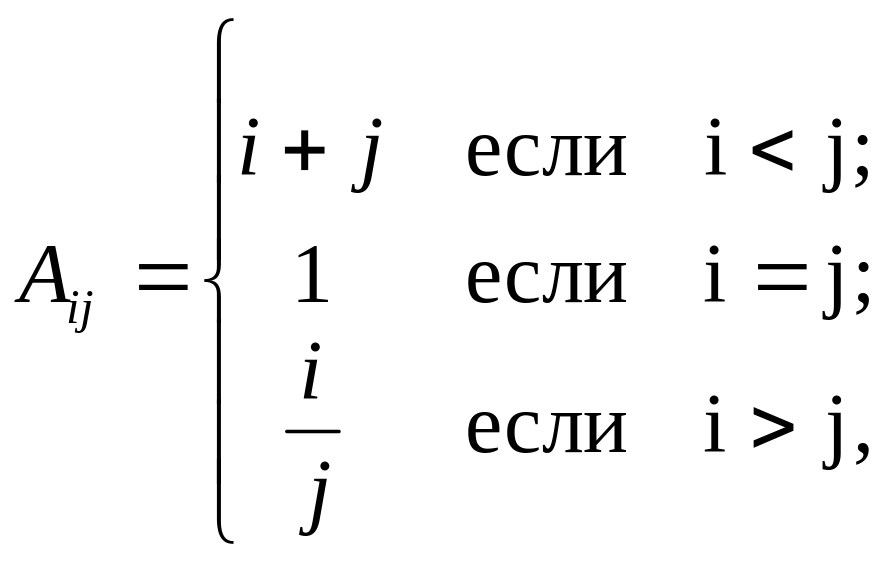 Пример 4. Разработать программу, формирующую матрицу , размерности 8 строк и 6 столбцов, элементы которой определяются по формуле