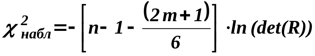 здесь n – количество наблюдений (объем выборки), m – количество факторов Xi , det (R) – определитель корреляционной матрицы.