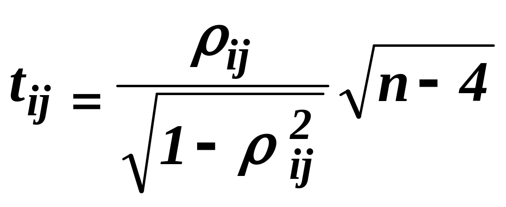 (Достаточно будет вычислить только три коэффициента корреляции, так как матрица R –1 симметрична, и ее диагональные элементы равны единице).