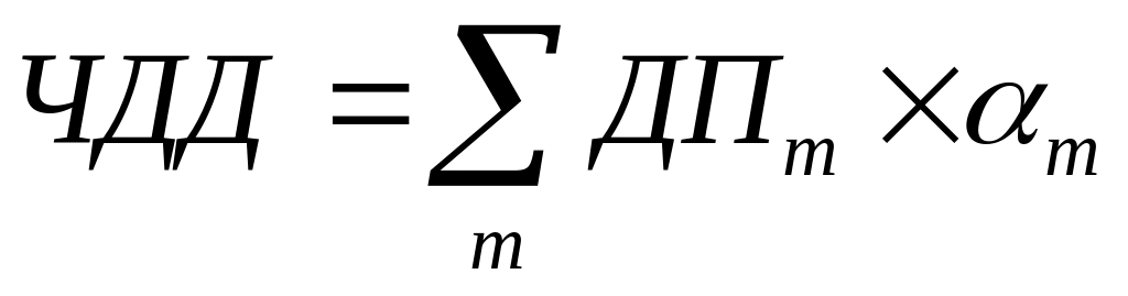Важнейшим и наиболее распространенным на практике показателем эффективности проекта является чистый дисконтированный доход (другие названия - ЧДД, интегральный эффект, Net Present Value, NPV) - накопленный дисконтированный эффект за расчетный период. ЧДД рассчитывается по формуле: