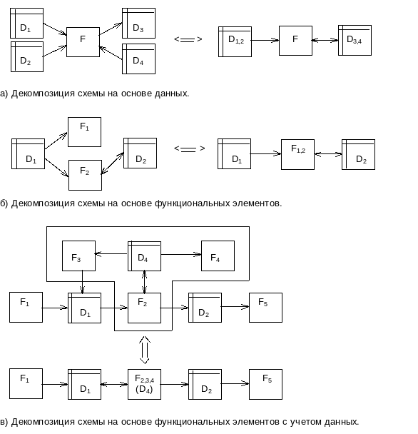 Рис. 2.5. Структурные преобразования схем, ориентированных на потоки данных.